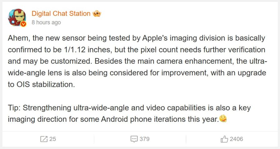 Insider Digital Chat Station uvedl, že Apple chystá výrazný upgrade fotoaparátu iPhonu. K tomu má firma využít nový obrazový snímač s rekordní velikostí v rámci svých zařízení.